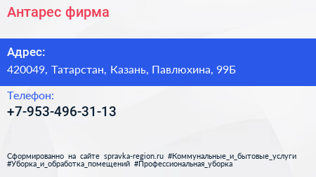 Антарес, фирма по адресу 420049, Татарстан, Казань, Павлюхина, 99Б в дальнейшем Организация, размещена в следующих категориях: