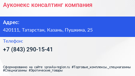 Ауконекс консалтинг, компания по адресу 420111, Татарстан, Казань, Пушкина, 25 в дальнейшем Организация, размещена в следующих категориях:
