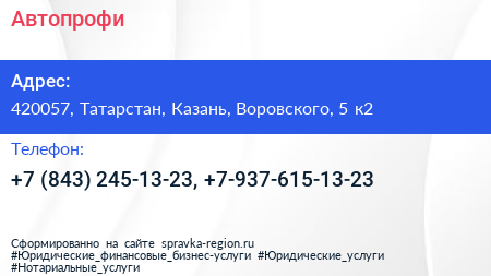 Автопрофи по адресу 420057, Татарстан, Казань, Воровского, 5 к2 в дальнейшем Организация, размещена в следующих категориях: