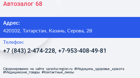 Автозалог 68 по адресу 420102, Татарстан, Казань, Серова, 28 в дальнейшем Организация, размещена в следующих категориях: