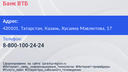 Банк ВТБ по адресу 420101, Татарстан, Казань, Хусаина Мавлютова, 17 в дальнейшем Организация, размещена в следующих категориях: