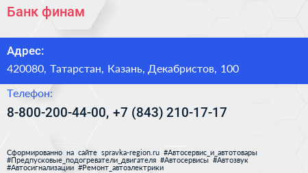 Банк финам по адресу 420080, Татарстан, Казань, Декабристов, 100 в дальнейшем Организация, размещена в следующих категориях: