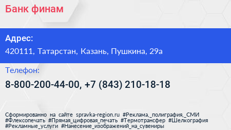 Банк финам по адресу 420111, Татарстан, Казань, Пушкина, 29а в дальнейшем Организация, размещена в следующих категориях: