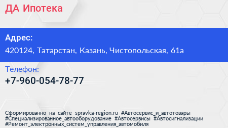 ДА! Ипотека по адресу 420124, Татарстан, Казань, Чистопольская, 61а в дальнейшем Организация, размещена в следующих категориях: