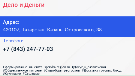 Дело и Деньги по адресу 420107, Татарстан, Казань, Островского, 38 в дальнейшем Организация, размещена в следующих категориях: