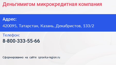 Деньгимигом, микрокредитная компания по адресу 420095, Татарстан, Казань, Декабристов, 133/2 в дальнейшем Организация, размещена в следующих категориях: