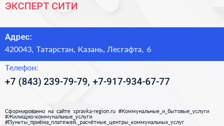 ЭКСПЕРТ СИТИ по адресу 420043, Татарстан, Казань, Лесгафта, 6 в дальнейшем Организация, размещена в следующих категориях: