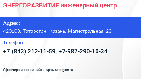 ЭНЕРГОРАЗВИТИЕ, инженерный центр по адресу 420108, Татарстан, Казань, Магистральная, 23 в дальнейшем Организация, размещена в следующих категориях: