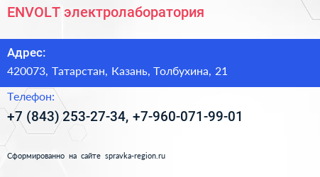 ENVOLT, электролаборатория по адресу 420073, Татарстан, Казань, Толбухина, 21 в дальнейшем Организация, размещена в следующих категориях: