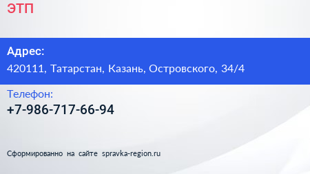 ЭТП по адресу 420111, Татарстан, Казань, Островского, 34/4 в дальнейшем Организация, размещена в следующих категориях: