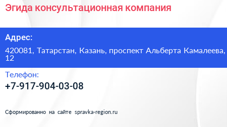 Эгида, консультационная компания по адресу 420081, Татарстан, Казань, проспект Альберта Камалеева, 12 в дальнейшем Организация, размещена в следующих категориях: