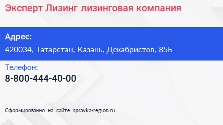 Эксперт-Лизинг, лизинговая компания по адресу 420034, Татарстан, Казань, Декабристов, 85Б в дальнейшем Организация, размещена в следующих категориях: