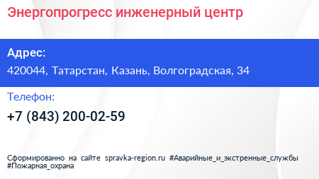Энергопрогресс, инженерный центр по адресу 420044, Татарстан, Казань, Волгоградская, 34 в дальнейшем Организация, размещена в следующих категориях: