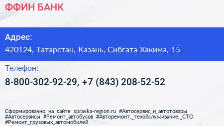 ФФИН БАНК по адресу 420124, Татарстан, Казань, Сибгата Хакима, 15 в дальнейшем Организация, размещена в следующих категориях: