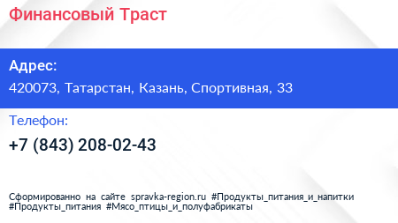 Финансовый Траст по адресу 420073, Татарстан, Казань, Спортивная, 33 в дальнейшем Организация, размещена в следующих категориях:
