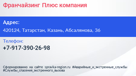 Франчайзинг Плюс, компания по адресу 420124, Татарстан, Казань, Абсалямова, 36 в дальнейшем Организация, размещена в следующих категориях: