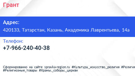 Грант по адресу 420133, Татарстан, Казань, Академика Лаврентьева, 14а в дальнейшем Организация, размещена в следующих категориях: