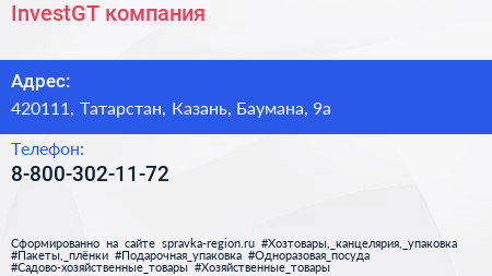 InvestGT, компания по адресу 420111, Татарстан, Казань, Баумана, 9а в дальнейшем Организация, размещена в следующих категориях: