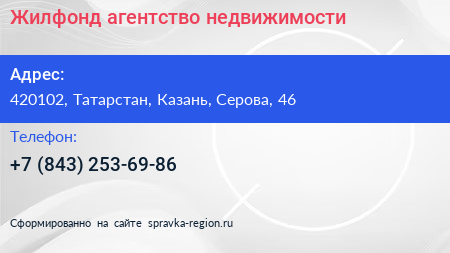 Жилфонд, агентство недвижимости по адресу 420102, Татарстан, Казань, Серова, 46 в дальнейшем Организация, размещена в следующих категориях:
