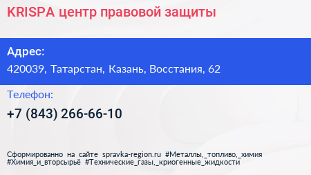 KRISPA, центр правовой защиты по адресу 420039, Татарстан, Казань, Восстания, 62 в дальнейшем Организация, размещена в следующих категориях: