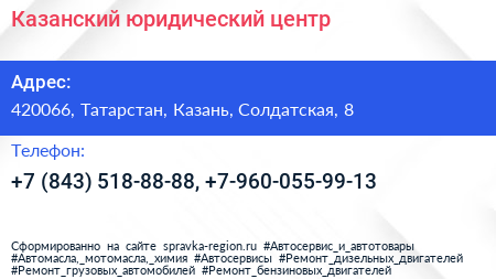 Казанский юридический центр по адресу 420066, Татарстан, Казань, Солдатская, 8 в дальнейшем Организация, размещена в следующих категориях: