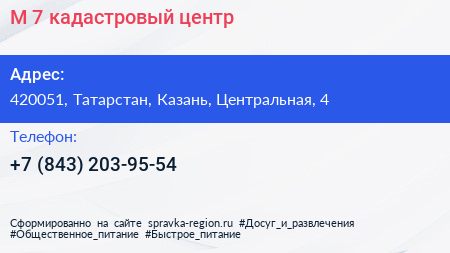 М-7, кадастровый центр по адресу 420051, Татарстан, Казань, Центральная, 4 в дальнейшем Организация, размещена в следующих категориях: