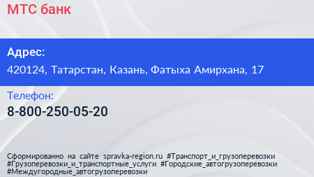 МТС-банк по адресу 420124, Татарстан, Казань, Фатыха Амирхана, 17 в дальнейшем Организация, размещена в следующих категориях: