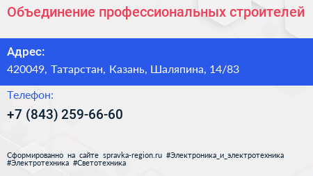 Объединение профессиональных строителей по адресу 420049, Татарстан, Казань, Шаляпина, 14/83 в дальнейшем Организация, размещена в следующих категориях: