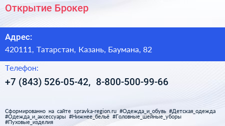 Открытие Брокер по адресу 420111, Татарстан, Казань, Баумана, 82 в дальнейшем Организация, размещена в следующих категориях: