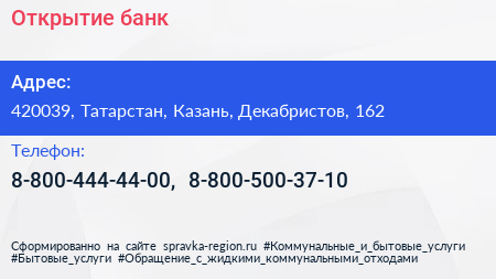 Открытие, банк по адресу 420039, Татарстан, Казань, Декабристов, 162 в дальнейшем Организация, размещена в следующих категориях: