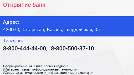 Открытие, банк по адресу 420073, Татарстан, Казань, Гвардейская, 35 в дальнейшем Организация, размещена в следующих категориях: