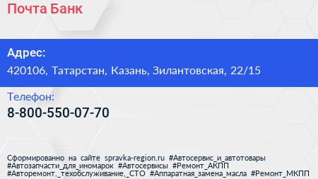 Почта Банк по адресу 420106, Татарстан, Казань, Зилантовская, 22/15 в дальнейшем Организация, размещена в следующих категориях: