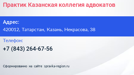 Практик, Казанская коллегия адвокатов по адресу 420012, Татарстан, Казань, Некрасова, 38 в дальнейшем Организация, размещена в следующих категориях: