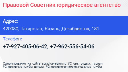Правовой Советник, юридическое агентство по адресу 420080, Татарстан, Казань, Декабристов, 181 в дальнейшем Организация, размещена в следующих категориях: