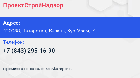 ПроектСтройНадзор по адресу 420088, Татарстан, Казань, Зур Урам, 7 в дальнейшем Организация, размещена в следующих категориях: