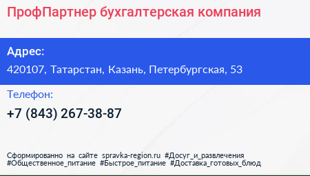 ПрофПартнер, бухгалтерская компания по адресу 420107, Татарстан, Казань, Петербургская, 53 в дальнейшем Организация, размещена в следующих категориях: