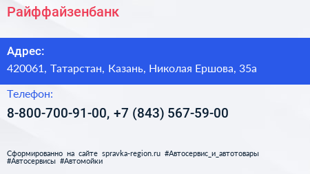 Райффайзенбанк по адресу 420061, Татарстан, Казань, Николая Ершова, 35а в дальнейшем Организация, размещена в следующих категориях: