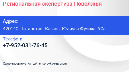 Региональная экспертиза Поволжья по адресу 420140, Татарстан, Казань, Юлиуса Фучика, 90а в дальнейшем Организация, размещена в следующих категориях: