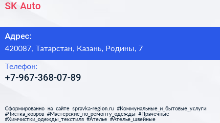 SK-Auto по адресу 420087, Татарстан, Казань, Родины, 7 в дальнейшем Организация, размещена в следующих категориях:
