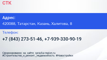 СТК по адресу 420088, Татарстан, Казань, Халитова, 8 в дальнейшем Организация, размещена в следующих категориях: