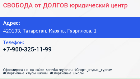 СВОБОДА от ДОЛГОВ, юридический центр по адресу 420133, Татарстан, Казань, Гаврилова, 1 в дальнейшем Организация, размещена в следующих категориях: