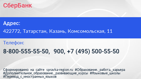 СберБанк по адресу 422772, Татарстан, Казань, Комсомольская, 11 в дальнейшем Организация, размещена в следующих категориях: