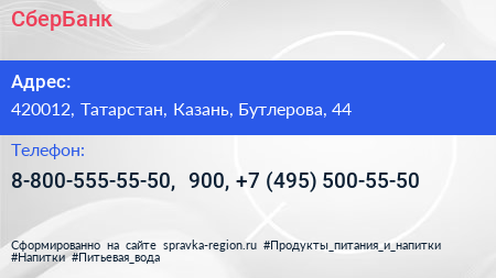 СберБанк по адресу 420012, Татарстан, Казань, Бутлерова, 44 в дальнейшем Организация, размещена в следующих категориях: