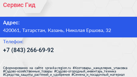 Сервис Гид по адресу 420061, Татарстан, Казань, Николая Ершова, 32 в дальнейшем Организация, размещена в следующих категориях: