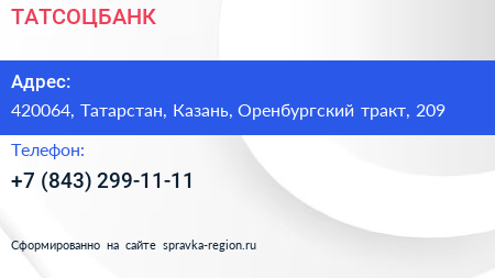 ТАТСОЦБАНК по адресу 420064, Татарстан, Казань, Оренбургский тракт, 209 в дальнейшем Организация, размещена в следующих категориях: