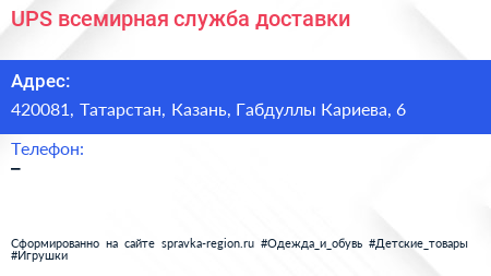 UPS, всемирная служба доставки по адресу 420081, Татарстан, Казань, Габдуллы Кариева, 6 в дальнейшем Организация, размещена в следующих категориях: