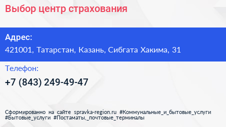 Выбор, центр страхования по адресу 421001, Татарстан, Казань, Сибгата Хакима, 31 в дальнейшем Организация, размещена в следующих категориях: