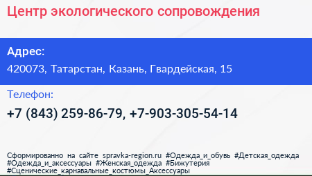 Центр экологического сопровождения по адресу 420073, Татарстан, Казань, Гвардейская, 15 в дальнейшем Организация, размещена в следующих категориях: