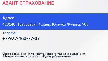 АВАНТ СТРАХОВАНИЕ по адресу 420140, Татарстан, Казань, Юлиуса Фучика, 90а в дальнейшем Организация, размещена в следующих категориях: