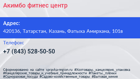 Акимбо, фитнес-центр по адресу 420136, Татарстан, Казань, Фатыха Амирхана, 101в в дальнейшем Организация, размещена в следующих категориях: